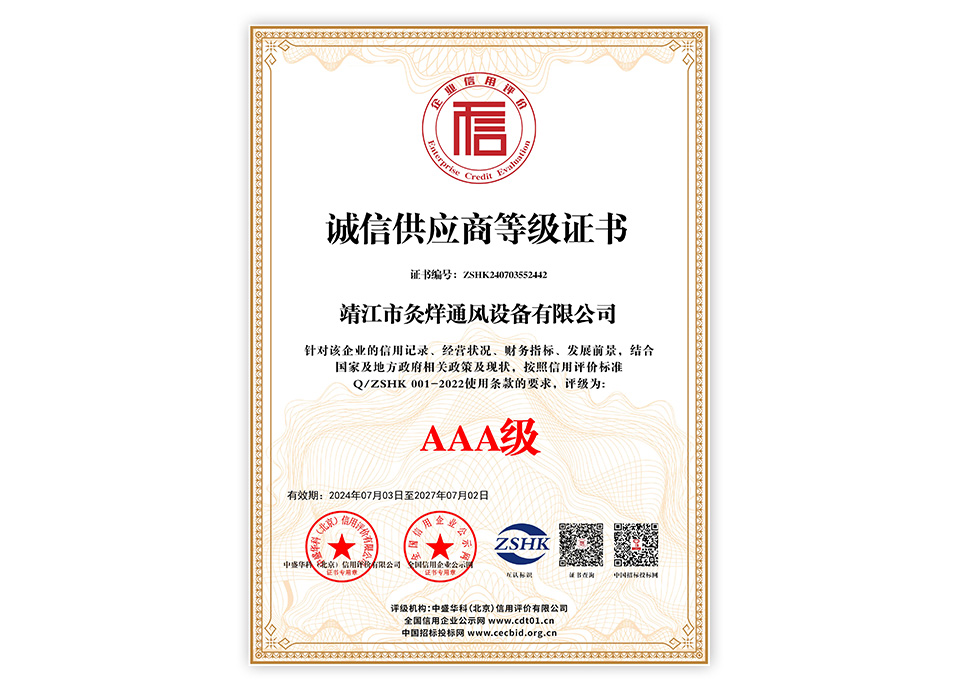 诚信供应商等级证书